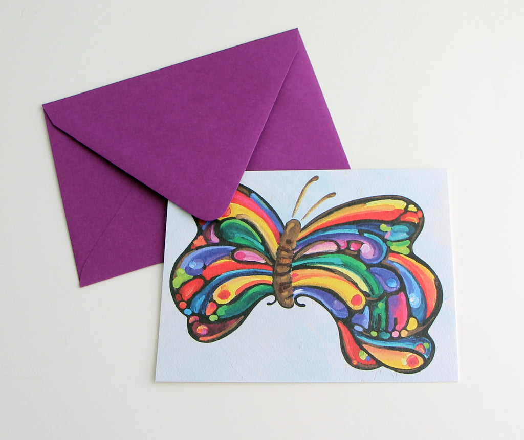 Set of 10 Kelly Kay Butterfly Fold Notes + Plum or Ivory A2 envelopes. Quantity of 1 = 10 notes + 10 envelopes.