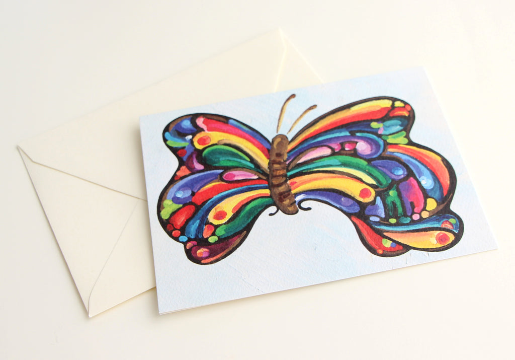 All original artwork is hand drawn, scanned and press printed on cotton textured paper in the USA. Folded notes are 5.5" x 4.25" (when folded) and envelopes are 5.75" x 4.5". Standard postage rates apply.